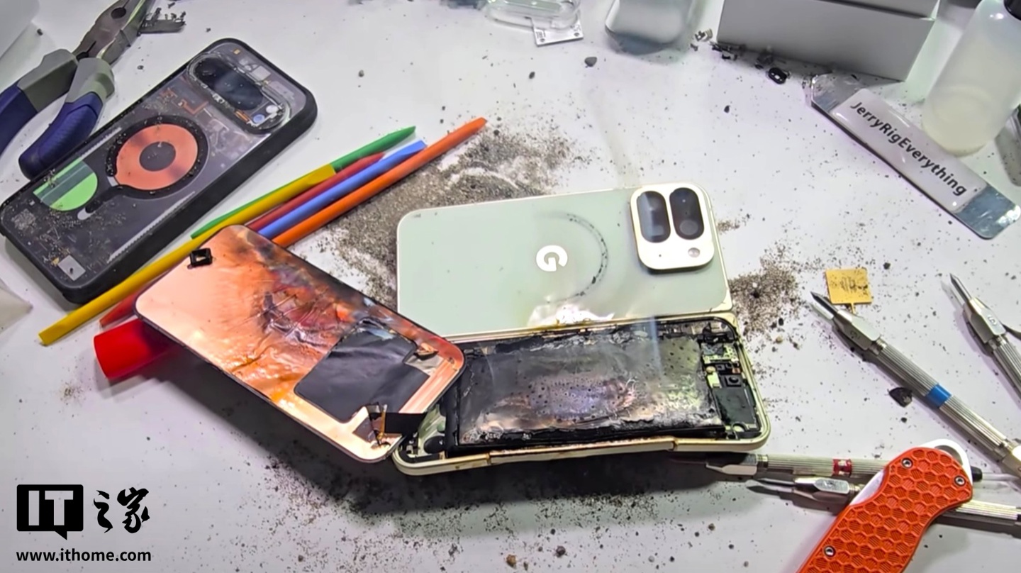 IT之家 10 月 15 日消息,每款旗舰智能手机发布后,都会有博主对其进行弯折测试、跌落测试以及其他各类耐用性检验。YouTube 测评人 JerryRigEverything(扎克・尼尔森)以其刮擦和弯折测试而闻名,此次他也照例对 Pixel 10 Pro Fold 折叠屏手机进行了常规测试。然而,这一次出现了意外情况。