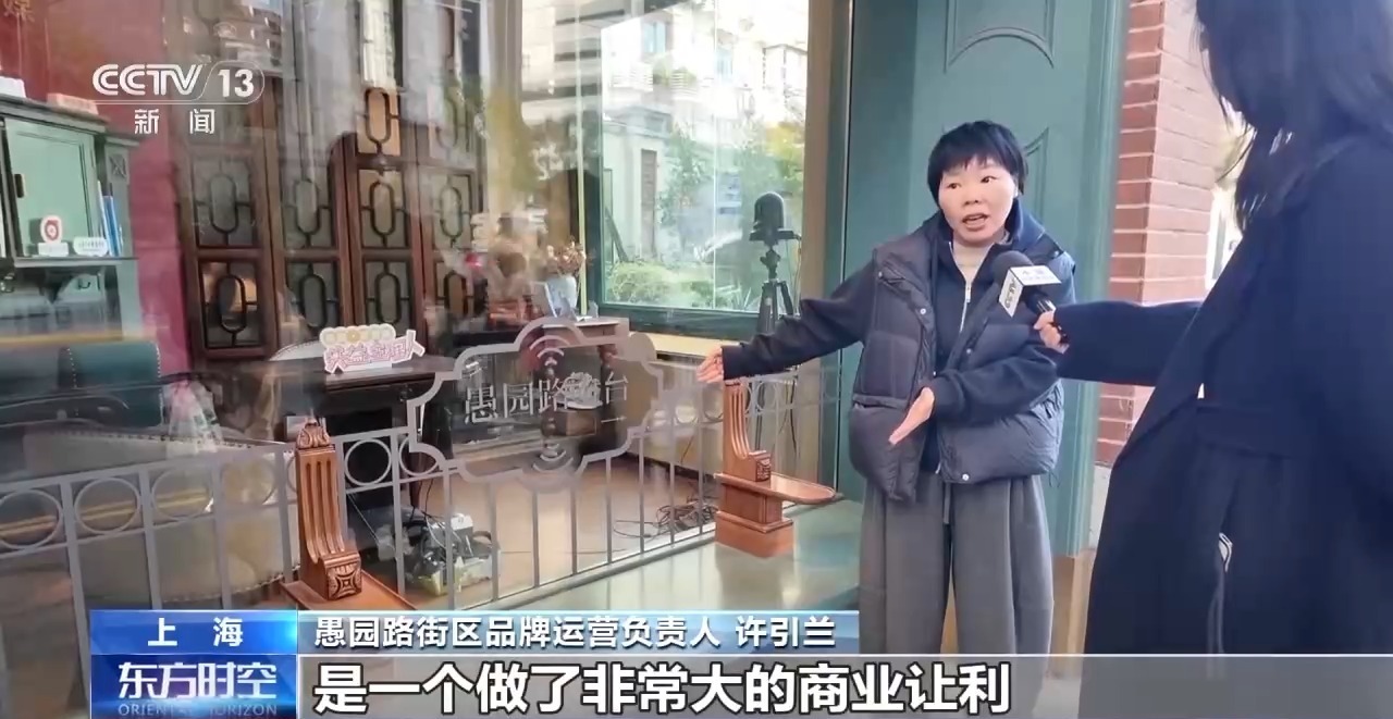 愚园路文化空间商户负责人 成吉:在我们看来它是非常值得的,因为互动性会更强,当有人在这坐着的时候,他其实也会好奇我们里面是什么样子,对我们来说也是吸引客流,来往我们这个空间里进的一个很重要的因素。